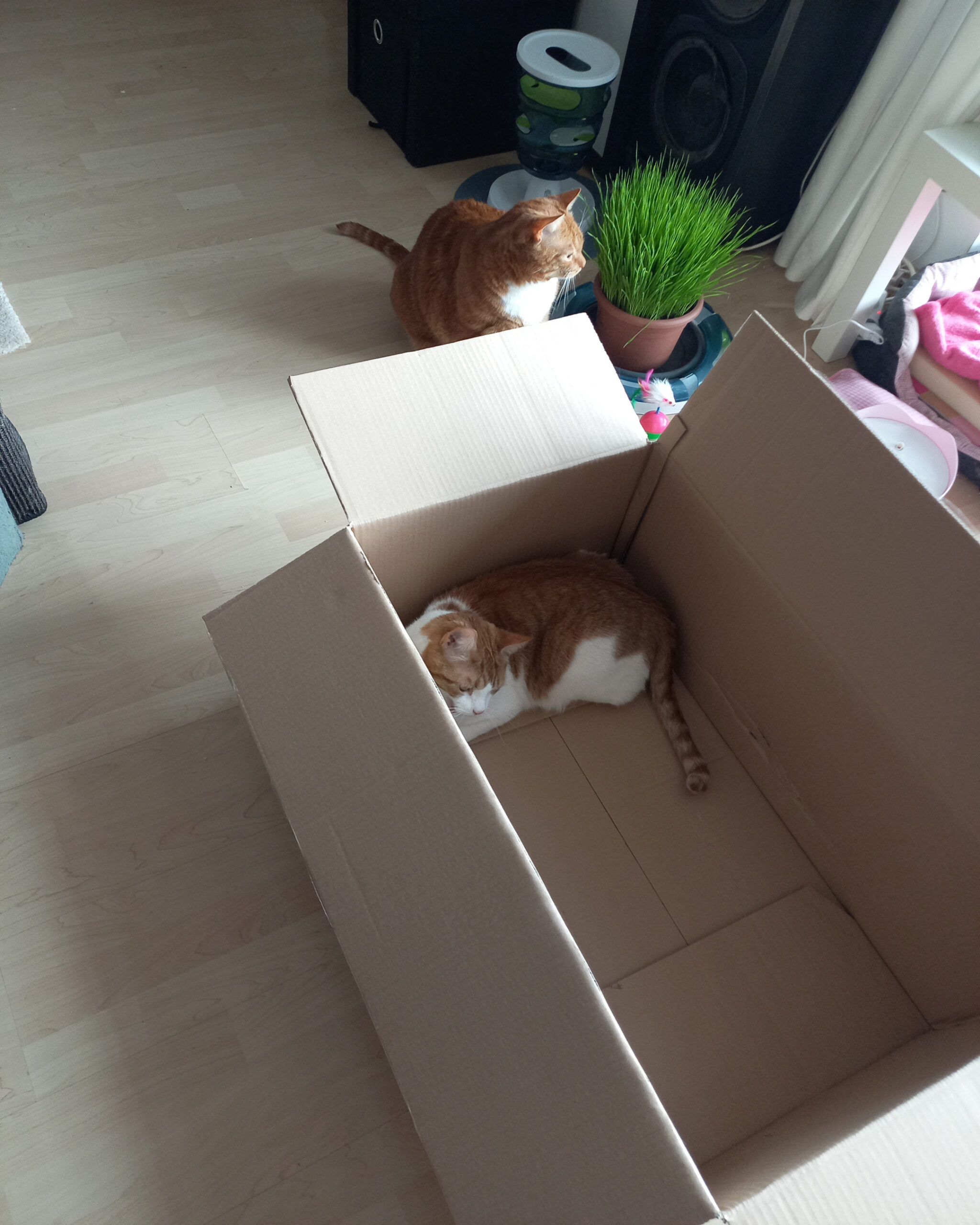 Aber da müssen wir durch, es ist wie es ist. Für Katzen gilt: Ein Leben ohne Kartons ist möglich, aber sinnlos und doof. Und ich bin jedes mal froh, wenn die Fellnasen sich so wohlfühlen.