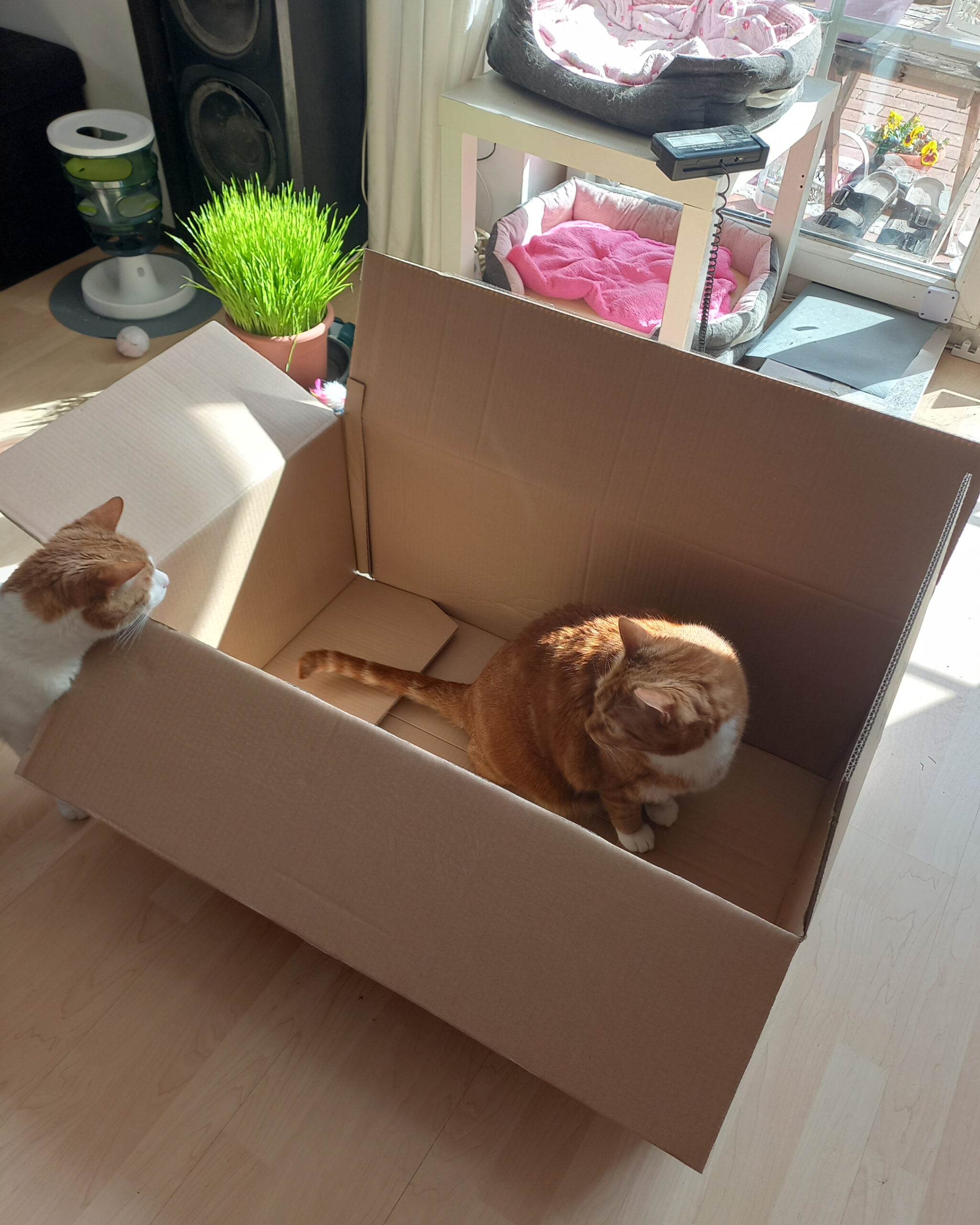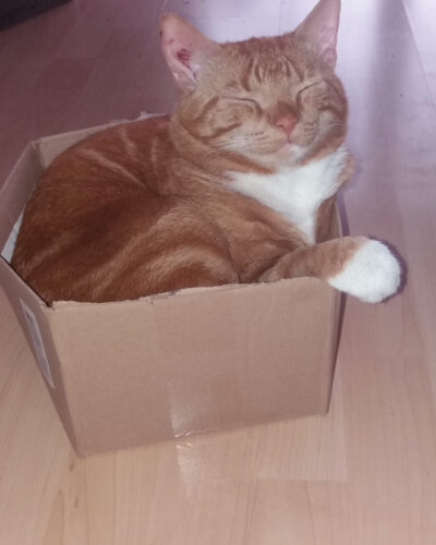 Wenn es dort draußen in der Welt eine Katze gibt, die noch nie in einen Karton gesprungen ist, dann lasst es mich bitte wissen und schreibt es mir in die Kommentare. Ich freue mich auch über Kartonstorys sehr!!!