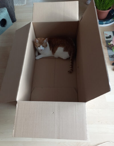 Katzen lieben Kartons. Kaum ist ein Karton ausgepackt, schon liegt eine Katze drin. Kartons und Katzen gehören zusammen wie Licht und Schatten, wie Sonne und Regen, wie Lachen und Weinen. Ich denke, Amazon wurde gegründet, um viele Katzen glücklich zu machen (Scherz), auch wenn man seit zwei Jahren zugunsten der Umwelt teilweise auf Umverpackungen verzichtet.